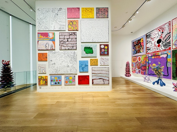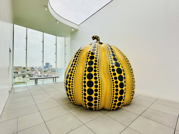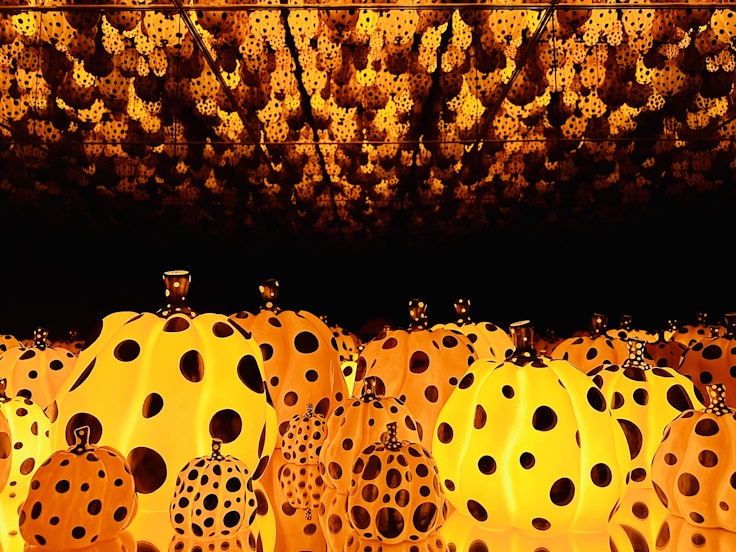 草間がもっとも好むモチーフのひとつである「かぼちゃ」も堪能できる。今回は、同館の開館を記念して制作したミラールームのインスタレーション《無限の彼方へかぼちゃは愛を叫んでゆく》(2017)と、大型の彫刻《大いなる巨大な南瓜》(2024)をそれぞれ4階と5階で見ることができる。