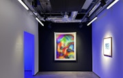 もともと体育館だった地下1階は、もっとも天井高がある空間。「絵画における抽象ーその開拓精神」をテーマに、ゲルハルト・リヒター、カタリーナ・グロッセ、オスカー・ムリーリョ、ローレン・クイン、ベルナール・フリズ、ミシェック・マザンヴなど、様々な平面を中心に構成されている。ここでは、植島が現代美術に興味を持ったきっかけとなったリヒターによる作品《Abstrakte Skizze (Abstract Sketch)》(1991)も、キーピースとして展示されている。同作は、リヒターのもっとも重要なシリーズである「Abstrakte (Abstract)」の一点だ。