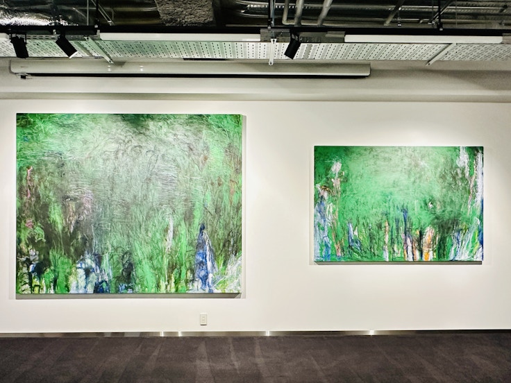 5階は松本陽子のみを紹介するフロアだ。松本は1936年東京都生まれ。60年に東京藝術大学美術学部油画科を卒業し渡米。当時、ニューヨークを席巻していた抽象表現主義やカラーフィールドの作家たちのよる作品と出会い、影響を受けた。松本の精神性を具現化する「ピンク」のシリーズのほか、「黒」「グレー」「水彩」「緑」など様々な作品を手がけてきた松本は、近年再評価の機運が高まっている。ここでは新作を含む5点の中型・大型絵画が並ぶ。