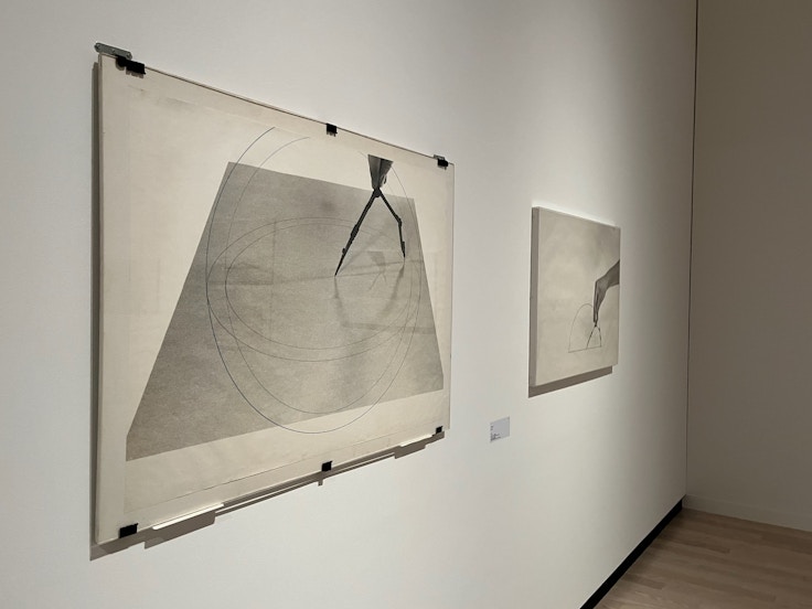 このように、対象を認識することについての問いかけを、写真を通じて行っていた木下だが、その表現はやがて図像を用いた作品へと移行していく。例えばコンパスで真円を描き、描かれている円を斜めから撮影した写真と重ね合わせる。写真に映った円は斜めから撮られているため楕円であるが、鑑賞者はこれを経験で補完し、真円だと認識する。このような「存在」の多重性への木下の興味は、より構造的に表出するようになる