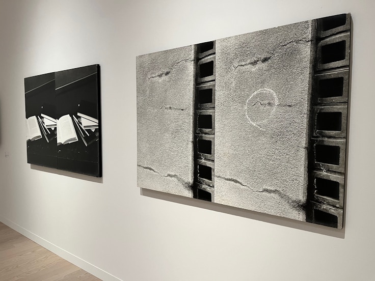 1972年から74年にかけて、木下は複数の写真を並べて構成する組作品を制作した。例えば《Untitled-b / む103(壁のシミ(ブロック))》(1972)は、同じ壁を写した写真であるが、片方はチョークで丸がつけられており、違いが認識される。本作は、例え同じ「存在」を写しながらも、そこに異なる認識を同居させられることを示す。
