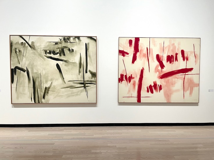 木下佳通代は1939年神戸市生まれ。京都市立美術大学(現・京都市立芸術大学)卒業後、美術教師として勤めながら「グループ〈位〉」とともに活動。77年には第13回現代日本美術展兵庫県立近代美術館賞を受賞、82年に第11回ブルーメール賞美術部門を受賞した。80年代以降は大型のペインティングに取り組むも、90年はに乳ガンが発覚。闘病しながらの制作を続けたが、94年に55歳の若さで世を去った。