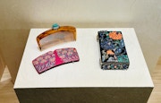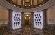 本展会場・表慶館の中心に位置するのが、これら2つのパートを結ぶ、澁谷翔によるインスタレーション《日本五十空景》(2024)だ。カルティエ ジャパン50周年を記念するためにメゾンから制作を依頼にされた澁谷は、36日にわたり47都道府県を旅し、絵画50点の連作を制作した。歌川広重『東海道五十三次之内』にオマージュを捧げたこの新作は、日本各地の地元新聞紙の一面に空の景色を描いたもので、時間の移ろいを表現している。カルティエと日本のつながりの過去、現在、そして未来をつなぐという本展のコンセプトを体現するものとして、じっくり鑑賞してほしい。