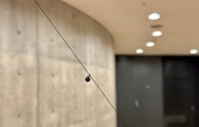 都市の環境的・政治的・社会的な状況と音の関係性に関心を抱いてきたズル・マハムードが見せるのは《静粛なる抵抗宣言》(2024)だ。展示室に置かれたスピーカーと、そこから伸びるようにピンと張られた極めて細いゴムバンド。スピーカーから発せられるのは40ヘルスの作家による「マニフェスト」の音読であり、それがモールス信号に変換され、ゴムバンドに吊るされた鈴を振動させ、ごく微かな音を発している。情報が氾濫する現代において微かな声に道を澄ませることの重要性を伝えるとともに、世界には声を上げる抗議活動が許されない状況が存在するのだという事実も示唆する。