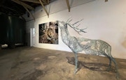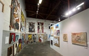 かつて貯蔵所だった空間は、その天井高を活かしてパネルを設置して大型作品を多数展示。飯沢康輔の多種多様で迫力のある大型の人物画などは、この空間だからこそ映えるプレゼンテーションだといえる。