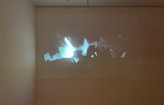 葉山嶺は本展で3つの映像作品を展示。《The Focus》(2013)は、主に古い写真集を再撮影したイメージで構成される作品で、火山や山脈、遊牧民などを写したイメージと葉山自身によるテキストが織り交ぜられている。《聴こえない足音》は、地質学、民俗学、宇宙科学を扱う古い本に掲載された図版を再撮影した写真を素材としたもの。約1分間の映像作品《Reportage !》(2015)では、紙でできた現代の家屋が燃えていく様子を、「映画の父」と呼ばれるリュミエール兄弟の初期映画にならって手回しハンドルのカメラでとらえている。