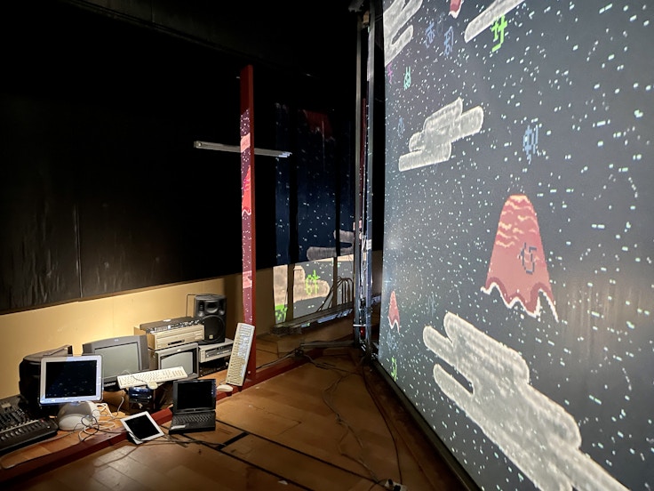 そのほか、米澤柊は展開してきたシリーズ「オバケの」の新作となる《「オバケの」第10話——アニメ物族室C》(2024)を発表。たかくらかずきの《ハイパー神社(蛇)》(2024)は、鑑賞者が実際に操作することのできるゲーム作品。鑑賞者は、祭りや神祇信仰で祀られるカミ側の視点で「蛇」を操作し,画面上のひらがなを紡いで川柳をつくることが求められる。完成した川柳は、同シリーズの《ハイパー神社(祭)》という2Dメタヴァースに参拝すると読むことのできる祝詞となるという。