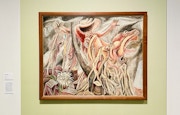 いっぽう第3章では、壁画運動から距離を置いたメキシコの作家たちからの影響が紹介されている。1920年代のメキシコでは、キュビスムやシュルレアリスムなどの国際的な美術動向に共鳴する画家たちも現れた。ルフィーノ・タマヨはそのひとりであり、暴力的なモチーフによって構成された《メキシコ静物》(1938)もタマヨからの影響が指摘される作品だ。