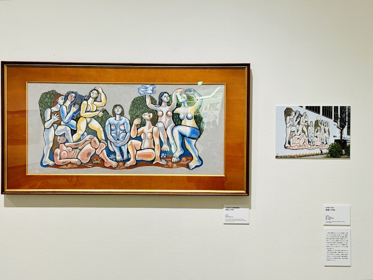 北川は55年にメキシコを再訪し、旧友と親交を深めている。エピローグは、この再訪を契機にした制作活動で締め括られる。メキシコでモザイク壁画の可能性に注⽬した北川は、瀬⼾の陶磁器産業の技術⼒の⾼さを認識したという。56年にはアメリカとヨーロッパを周遊し、ルネサンス以前のモザイク壁画に感銘を受けた。帰国以降には、瀬⼾の職⼈と協働して公共の場所に設置するモザイク壁画を次々と制作。ここでは、瀬⼾市立図書館や瀬戸市民会館、名古屋CBC会館など現存する壁画の原画が並ぶ。