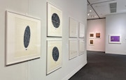 吉田は70年代、版画の制作に加え、転写などの実験的な手法を試みながら絵画表現を模索していた。74年にはイギリスでの文化庁在外研修から帰国。その経験は吉田にとって大きなものだったという。第二章には、帰国後に制作した作品が並ぶ。道路標識を撮影したスライドを壁に投影しその輪郭を紙の上に鉛筆でなぞり、下部に色見本を貼付した「J」シリーズ、風景の一部を抽出した「Work D」シリーズなど、「うつしとる」という行為がその大きな特徴だ。