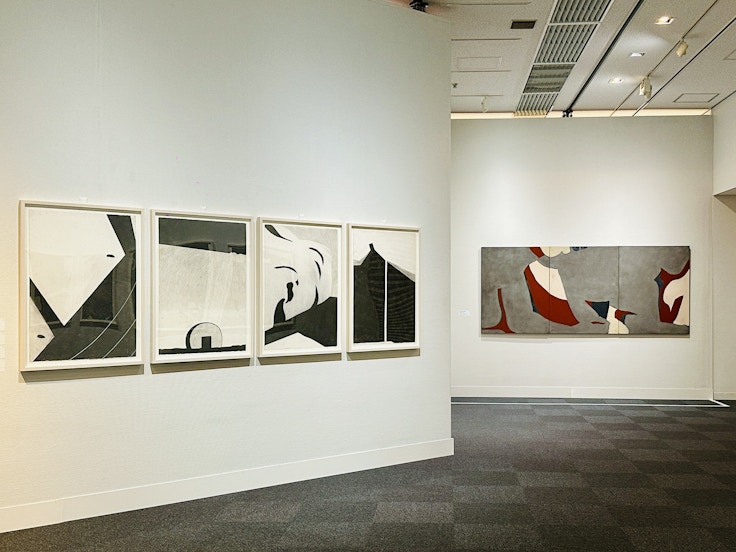 記録写真や未公開の資料を交え、初期作品から、1990年代後半の絵画の大作までをふり返り、吉田克朗の制作の軌跡をたどる本展。会場は、「ものと風景と 1969-1973」「絵画への模索─うつすことから 1964-1981」「海へ/かげろう─イメージの形成をめぐって 1982-1986」「触─世界に触れる 1986-1998」「春に─エピローグ」の5章で構成されており、年代順に吉田の仕事を追うことができる。
