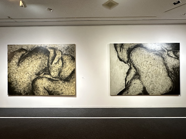 「かげろう」はその後、「触」シリーズへとつながっていく。「触」シリーズは、吉田が1986年頃から病に倒れる直前まで取り組んだもの。粉末黒鉛を手指で擦りつけることで描かれたのは、有機的な形象だ。その形象やマチエールは少しづつ変化をしながらも、吉田の制作の根源には、ひたすら「触れる」という身体感覚があったという。