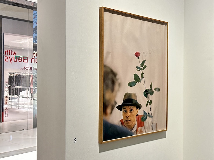 この作品の隣には、畠山がボイス来日時に撮影したボイスのポートレイト《ヨーゼフ・ボイス イン トーキョー 1984》(1984)が並ぶ。畠山は当時のボイスについて「率直、分け隔てなく接する人。いつも同じ服を着ているのが秘密めいていて、特別な人だと感じた」と振り返りつつ、「このときの時間が、いまこの壁の上にあると思うと、皆さんに見ていただく意味はあると思う」と語る。