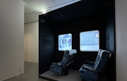 本展最後を飾るのは武田のインスタレーション《Day Tripper》(2023)。電車のシートを展示室に再現したこの作品では、背景に在来線から見える風景が流れていく。展示室という意識的にものを観にくる場所でデジャヴのように日常風景と出会うことで、展示を見た後の生活にも異なる視点を与えるものだ。武田は「無関心なものに目を向けさせる」という点で、ボイスとのつながりを見せた。