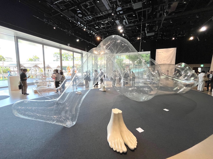 《足元の展望台》は大きな足のかたちをした台座で、来場者はこの上に乗ることができる。上に乗った子供は少し背伸びしたくらいの背丈になり、大人は自分の足元をいつもよりも下に見ることになる。ほんの数十センチ高くなるだけでも、周囲の景色は変化し、これまで当たり前だったものが違った様子に見えてくる。今回の展示室ではどのようなものが見えるのか、ぜひ実際に乗って確かめてほしい。