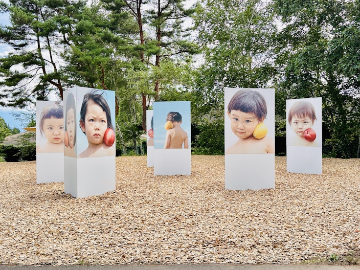屋外ではこのほか、世界各地の新聞にマーブリングを施した吉楽洋平の《Formless》や、作者と語り手が同一人物となってフィクションを紡ぐエルザ&ジョアンナの《The Timeless Story of Moormerland》、野湯に人間の身体を介在させた写真を撮り続ける山谷佑介の《ONSEN》、横浪修がライフワークとして続けている、子供を被写体に、フルーツや野菜を身体のどこかに挟んで撮影するシリーズの延長《PRIMAL》、ニコンフォトコンテストの過去受賞作など、多様な写真表現が集まる。