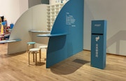 最後の展示室では、現代美術というフォーマットに対して揺さぶりをかけ続けてきた開発の営みがまとまっている。ピート・モンドリアンの作品を模した巨大靴下や、ジャクソン・ポロックのドリッピングをあしらった巨大Tシャツといった《巨大オマージュシリーズ》(2016)は、日常と美術を大胆に接続する。また、04年のヴェネチア・ビエンナーレ第9回国際建築展の会場プランなど、開発が様々な会場で試みてきたことも知ることができる。