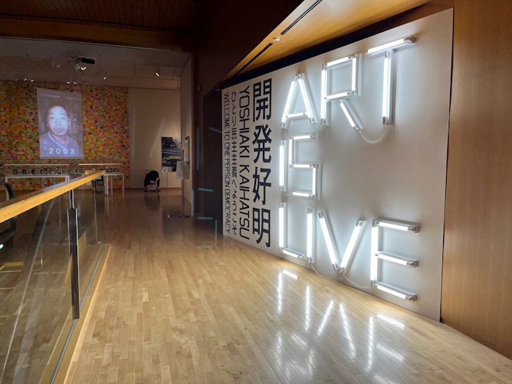 東京・清澄白河の東京都現代美術館で、開発好明(1966〜)の都内美術館初となる大規模個展「開発好明 ART IS LIVE ―ひとり民主主義へようこそ」展が開幕した。会期は11月10日まで。