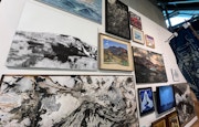 2階では原田綾乃と山本柱輔の展示が行われている。木版画表現を主体とする原田は、和室になじませるように作品を展開。山本は、「流れ」「変化」「重なり」をキーワードに、東北芸術工科大学から蔵王温泉までの約15キロを歩きながら描いたドローイングのほか、彫刻など、部屋の窓から見える蔵王の風景とも呼応させるようにして展示した。