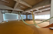 温泉街を見下ろす駐車場には、無音で冷水が循環するラジエーターが備えつけられた渡邉吉太による3つの部屋《ねむりの空間|間の庵/あわいのいおり》が建築された。内部に入り、ステンレス製のイスに座って眠りと覚醒のあいだにあるような空間を体感できる。