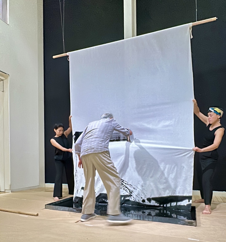 松谷は1937年大阪生まれ。14歳で結核にかかり、22歳までの8年間を闘病生活に費やした。この期間に日本画を学び、63年には具体美術協会に加入。松谷は当時の新素材であるビニール系接着剤を用いてレリーフ状の作品を制作し、注目を集めた。その後66年に渡仏し、パリを拠点に版画制作に取り組み始め、ボンドと鉛筆の黒鉛を組み合わせた独自の作品スタイルを確立。さらに、インスタレーションやパフォーマンスの分野でも独自の表現を展開し、87歳を迎えたいまもなお旺盛な創作活動を続けている。