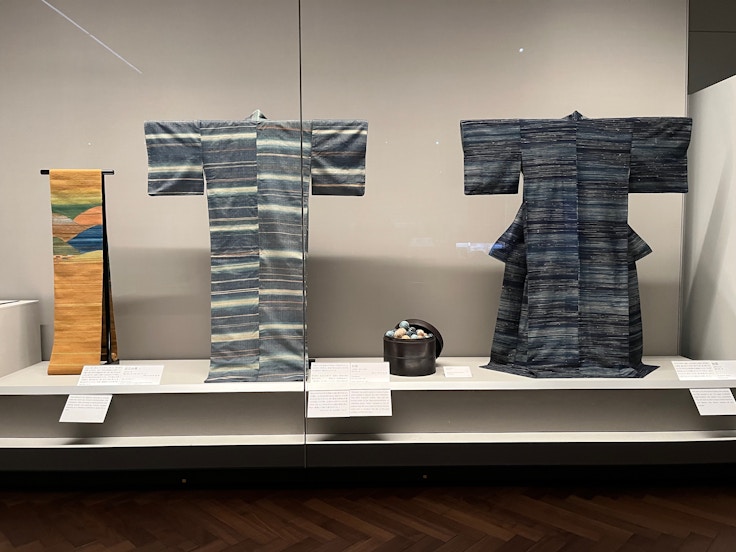 琵琶湖は志村が染織の道を歩み始めた地であり、創造の源泉でありつづけた場所だ。「琵琶湖」の章では四季によって様々な表情を見せ、また志村にとっての魂のふるさとだった琵琶湖に着想した作品を展示している。例えば、《月の繭》(1985)は湖上の沖ノ島の上に月が昇る様に感動して考案した作品、《雪の湖》(2007)は厳冬の湖北の黒く静まる湖に心を動かされて考案した作品。自然由来のイメージがどのように染織というかたちで表現されているのかを堪能できる。