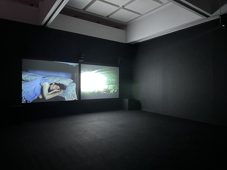 1970年に大阪万博のペプシ館を水を使った人工の霧で覆った「霧の彫刻」で知られ、世界各地で霧のプロジェクトを実施している中谷芙二子。その中谷とのスペシャル・コラボレーションも本展のハイライトだ。坂本龍一+中谷芙二子+高谷史郎《LIFE–WELL TOKYO》霧の彫刻 #47662(2024) は、東京都現代美術館屋外のサンクンガーデンを使って展示されるもの。霧と光と音が一体となり、唯一無二の世界を構成し、文字通り鑑賞者を包み込む。