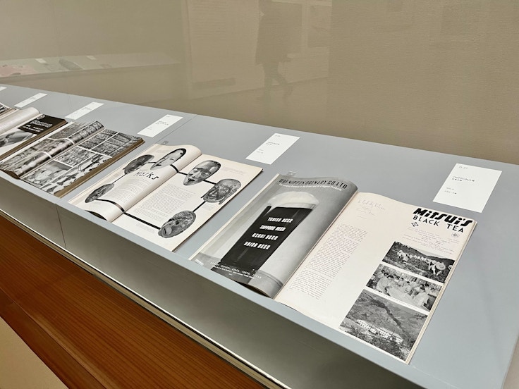 第5章「モノ・グラフィズム」では、商業と密接に結びついた広告写真が取り上げられている。新興写真などと同時代的に注目されたこれらの写真は、アートディレクターやデザイナーらとの協業によって成立した。ここでは、名取洋之助らが設立した「日本工房」による対外宣伝紙『NIPPON』(1934)や、現在も愛され続ける河北秀也・浅井慎平の「いいちこ」ポスター(1984〜)などが展示されている。