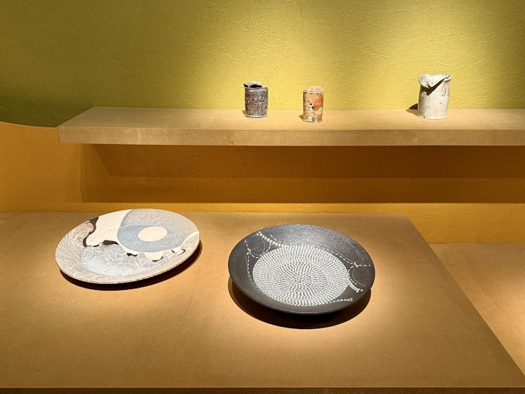 会場は大きく分けて、ふたつのテーマに基づいて構成されている。前半は器の形態の作品で、後半は実用性を持たないオブジェ的造形作品だ。本展の担当学芸員・島崎慶子(菊池寛実記念智美術館・学芸課長)は開幕にあたり、次のように述べている。「陶芸というと器を思い浮かべる方が多いかもしれませんが、そのジャンルのなかで器ではない形態をつくった作家たちがどのような思いを込めていたのかをご覧いただき、その作品が交錯する空間で何が見えてくるのかを感じていただければと思います」。