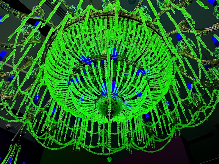 米谷健+ジュリアが見せる、ウランガラス特有の妖しくも美しい緑の光は、世界中で展開される産業政策と経済発展の影に存在する問題を可視化し、問いかける。