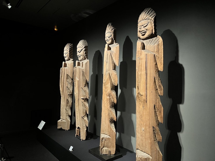 さらに、今回大きな見どころとしているのは、《両面宿儺坐像》(千光寺)の日本橋初展示だ。鬼神や賊、はたまた飛騨地方の英雄とも言い伝えられている両面宿儺。円空による荒々しい削りで表されたその像が、威厳ある佇まいで展示室に鎮座している。
