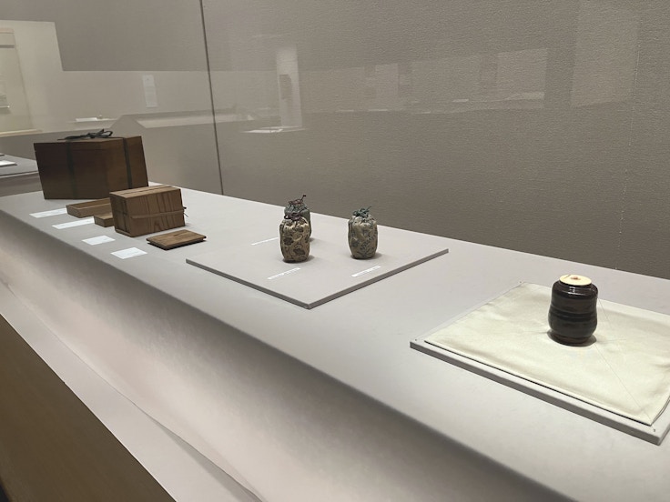 お気に入りの茶入は、釉薬が独特の味を出していてそれぞれの個性が楽しい。付属品の仕覆(茶入を包む裂の袋)や牙蓋(げぶた:象牙の蓋)には、各茶人の好みが書かれており、それぞれの微妙な感性の違いを比較できる。これだけ付属品が揃って公開されるのも貴重な機会だ。