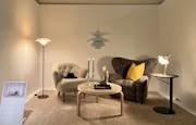 まず第1章「北欧のあかりと暮らし」では、北欧にある8件の住宅を撮影した写真がメッセージとともに並ぶ。独特な光の環境を持つ地域ならではの、あかりの美しい扱い方が見てとれるだろう。電気のなかった時代を受け入れながらも、人間らしさをそのままに照明器具が発展していったこともうかがえる。