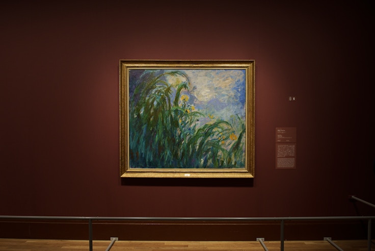 続く第2章は、「水と花々の装飾」。室内装飾のための絵画を含む、装飾芸術が隆盛を迎えた19世紀末のフランス。モネも例外ではなく、1870年代の印象派時代より本格的に装飾画を手がけてきた。1909年の「水の風景連作」展以降、のちに白内障と診断される視覚障害の兆候や最愛の妻の死などといった不幸が続き、モネの画業には一時の空白期間が生まれたが、1914年に創作意欲を取り戻すと、装飾画の制作に精力的に取り組むようになる。アイリスや藤、キスゲ、アガバンサスなどの花々を描いた作品が並ぶこの章は、モネの大の園芸愛好家でもあった側面が際立つ展示となっている。