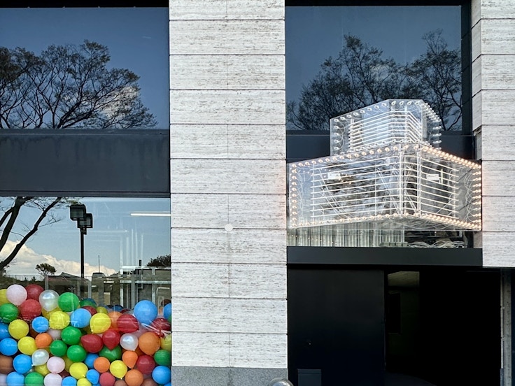 カラフルな風船で空間を埋め尽くすマーティン・クリードの《Work No. 1350: Half the air in a given space》(2012)は、与えられた空間の半分の空気を直径16インチ(40.6cm)の⾵船に詰め、空気という⽬に⾒えない存在を可視化するもの。鑑賞者は空間の中に入ることで空間認識が揺さぶられることだろう。