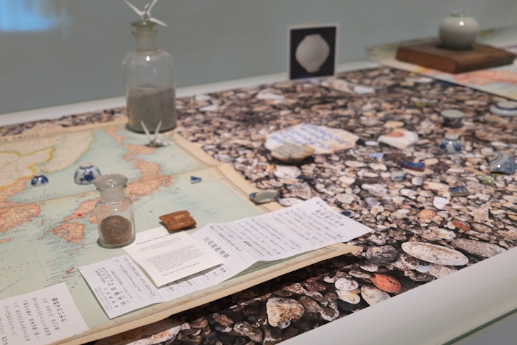 会場には牡蠣養殖のための筏とともに陶器が複雑に配置され、陶器の歴史のダイナミズムが感じられる。加えて、器がつくられた土地の物語も作品の様々な場所に染み込んでおり、訪れた人の興味を掻き立てる。