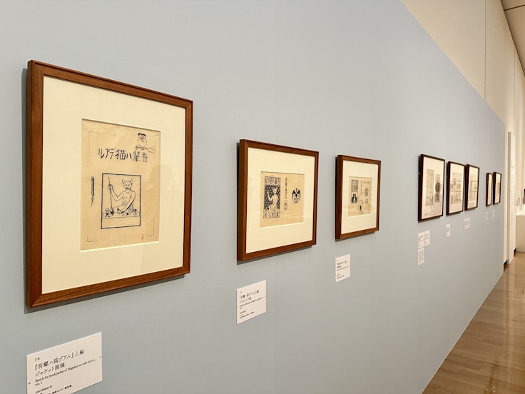 展覧会冒頭を飾るのは、五葉の装幀における代表な仕事である夏目漱石『吾輩ハ猫デアル』のデザインだ。今年は同作連載開始および初版発行から120年目の節目。漱石は最初の小説である同書を世に出すにあたり、美しい本を出したいと願い、五葉はこれまでになかった装幀でこの願いに応えた。