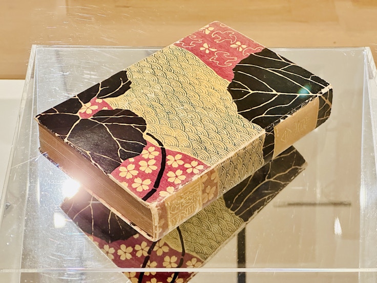 2章と同じ展示室に広がる3章では、五葉の様々な近代装幀の名作も展示。表紙や見返しだけでなく、本文にまで装飾が施された『浮草』(1908)をはじめ、五葉の先駆的な装幀仕事の数々を見ることができる。