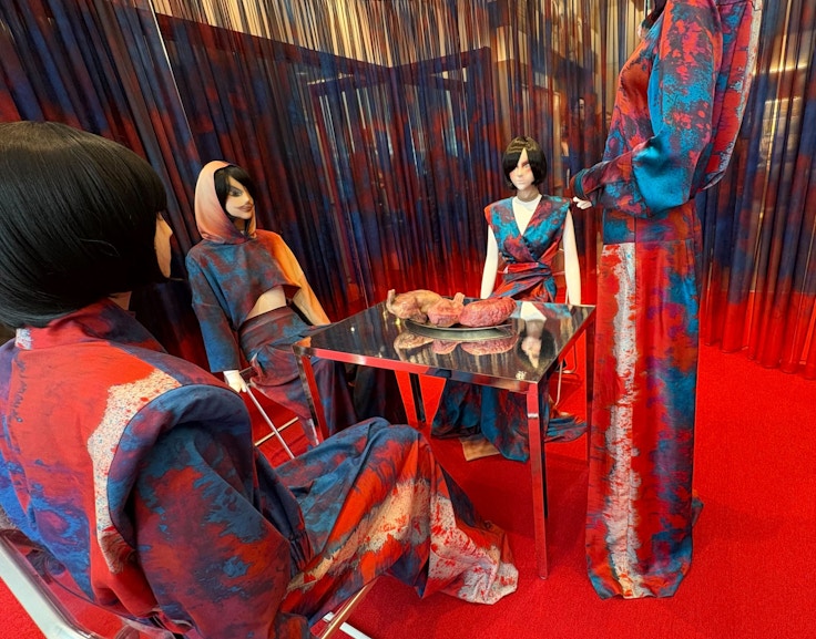 そして大丸心斎橋の8階では、ポーランドで活躍中のファッションデザイナー兼アーティストの、ヨアンナ・ハヴロットによる「ウェアラブルアートー見えざる系」が展示中。十二単にインスパイアされた作品を展開し、作品を通じて女性の内面を表すことを意図している。期間内に館内14ヶ所でハヴロットの作品が展開されていく。