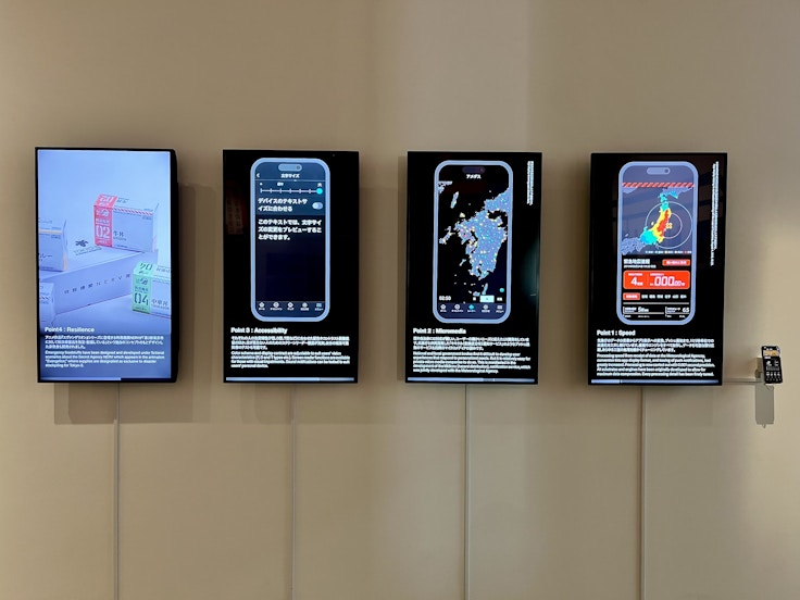 ご存知の方も多いであろう「特務機関NERV防災アプリ」や建築家・坂茂による紙管でできたフレームに布を掛けて完成するシンプルなパーテーション「紙の間仕切りシステム(PPS)」もここでは展示されている。掲げられている問いと呼応したプロジェクトも紹介されており、自身の考えのみならず、他の人たちがどのように「災害」を乗り越えようと試行錯誤してきたのかという視点でも知見を得ることができるだろう。