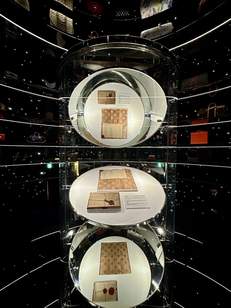 また本セクションでは、公的なデザイン登録を所蔵する機関であるパリ市立公文書館の移転作業と、それに伴う精緻な目録作成によって2021年に見つかったアイコニックなキャンバスのオリジナルサンプルが見つかったモノグラム ・ キャンバスの商標登録サンプルが初公開。いまなお世界を席巻するモノグラムの世界を、ダイナミックな動くインスタレーションを通してより深く知ることが可能だ。