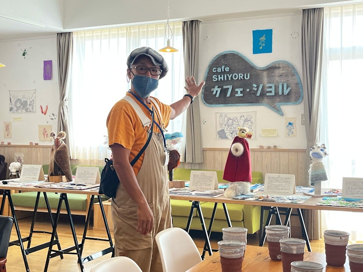 ハンセン病や大島青松園についての資料は、大島にある社会交流会館で展示されているため、上陸した際は必ずチェックしてほしい。また、同施設内にあるカフェ・シヨルでは、やさしい美術プロジェクトによる陶芸作品や、鴻池朋子による「物語るテーブルランナー」シリーズも展示。会期中の土日にはカフェも営業しているため、大島で採れた食材を使ったメニューを楽しむのもよいだろう。