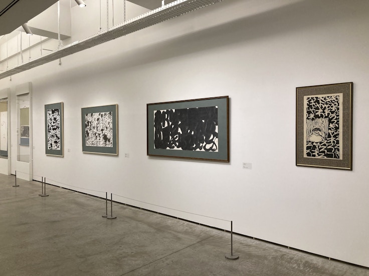 後半では、1955年に53歳で没した書家・大澤竹胎(おおさわ・ちくたい)の8点を紹介。12歳上の兄・大澤雅休とともに、群馬県大類村柴崎(現・高崎市柴崎町)出身、前衛書の先駆けのひとりだ。2人とも前橋文学館との共催展「ヒツクリコ ガツクリコ」(2017)で紹介されている。