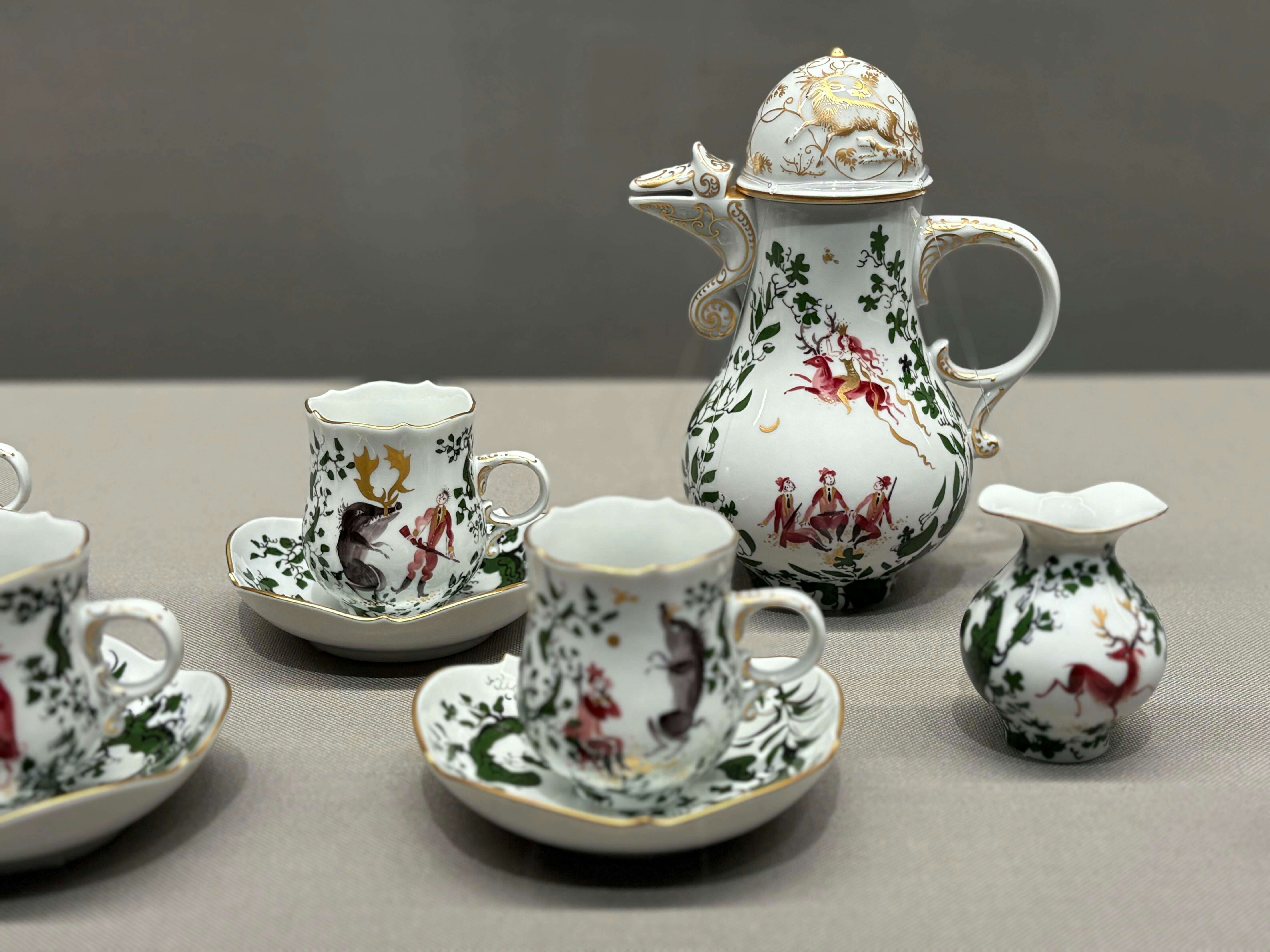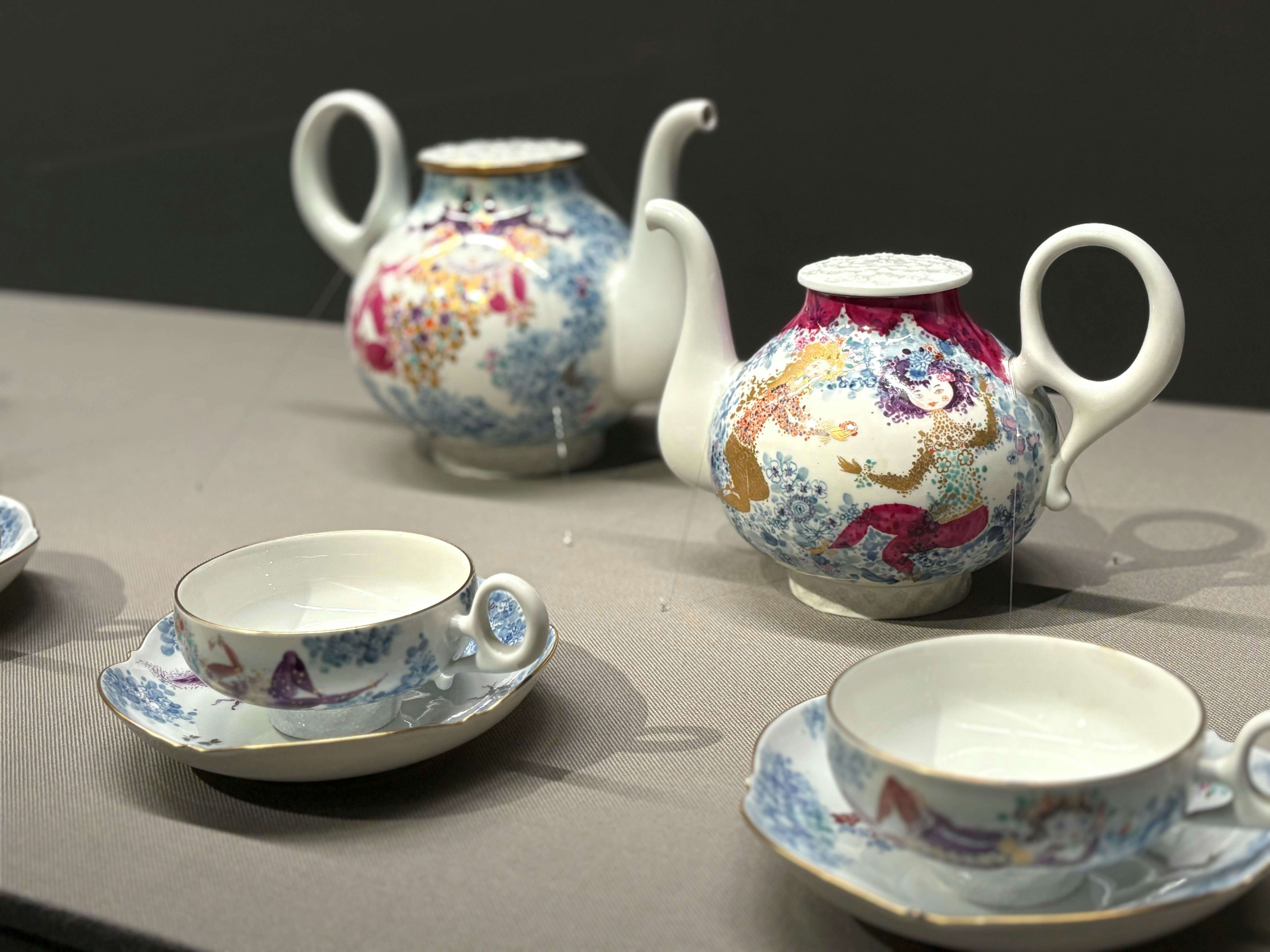 展示風景より、《ミュンヒハウゼン(ほら吹き男爵)》コーヒーサービス マイセン 1964頃~ 個人蔵 展示風景より、《色絵龍虎図輪花皿》(1670-90年代)愛知県陶磁美術館蔵 展示風景より、《色絵花鳥文貝殻形皿》(1740-50年代)マイセン 展示風景より、《エンゼルフィッシュ》花瓶(1958) 展示風景より、《スウィトピーの文様》コーヒーサービス(1962) 展示風景より、《ミュンヒハウゼン(ほら吹き男爵)》コーヒーサービス マイセン 1964頃~ 個人蔵 展示風景より、《ミュンヒハウゼン(ほら吹き男爵)》コーヒーサービス マイセン 1964頃~ 個人蔵 展示風景より、《アラビアンナイト》ティーサービス(1966) 展示風景より、《アラビアンナイト》ティーサービス(1966) 展示風景より、《アラビアンナイト》ティーサービス(1966) 展示風景より、《アラビアンナイト》宝石箱(1966) 展示風景より、《猟師のホラ話》モカセット、ボウル(1973) 展示風景より、《サマーナイト》ティーサービス(1969、1974以降製作) 展示風景より、《サマーナイト》ティーサービス(1969、1974以降製作) 展示風景より、《ヴィジョン》コーヒーサービス(1990) 展示風景より、《アフロディーテ》コーヒーサービス(1998) 展示風景より、《ドラゴンメロディ》コーヒーサービス(1994) 展示風景より、《ドラゴンメロディ》コーヒーサービス(1994) 展示風景より、《祝祭舞踏会》コーヒーサービス(1998) 2 / 20