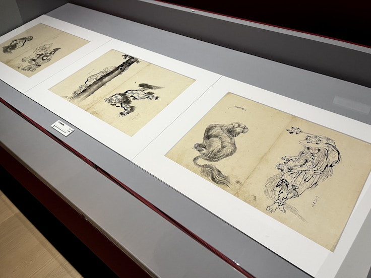 さらに本展では、北斎最晩年の肉筆画である『日新除魔図』16図を初公開している(会期中、展示替えあり)。北斎は80代前半に「毎日、新たに魔物を蹴散らす」ことを願い、獅子や獅子舞などを日課として描き続けたという。200図以上が残される本作に加え、新たに発見された16図が見られるのも、本展ならではだ。迫力のある筆使いにはとくに注目したい。