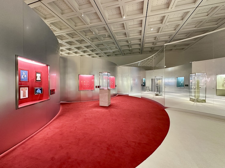 とくに注目なのは、希少なジェイドのジュエリーや、プラチナにダイヤモンド、壮麗なエメラルドをあしらった伝説的な《ネックレス》(1961)だ。「セブン・ワンダーズ」と呼ばれるこの特別なジュエリーは、イタリアの女優、モニカ・ヴィッティやジーナ・ロロブリジーダといった著名人に愛用されてきた由来を持つ。