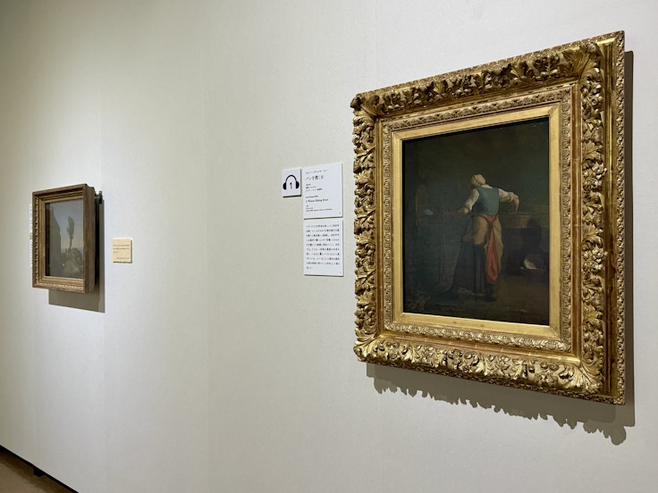 会場には、ミレー《グリュシー村のはずれ》(1854)や《パンを焼く女》(1854)、イスラエルス《ユダヤ人の写本筆記者》(1902)といった作品が並ぶ。ミレーが描く農民の逞しくも誠実な姿や、イスラエルスによる重厚な明暗表現を理解することで、ゴッホ自身の表現の軸が形成されていったことがうかがえる。