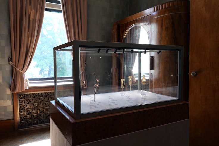 会場では西澤による展示設計にも注目したい。本展のためにつくられた専用の什器の数々は、邸宅の空間に溶け込み、その魅力をより引き立てている。作品の数々はケースのなかで生き生きと展示されており、ときに自然光が、ときに部屋の陰影が、アクセサリーの生きた魅力を巧みに演出していることがわかるはずだ。