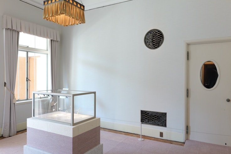 本展の最大の特徴は、アール・デコの意匠をふんだんに取り入れた東京都庭園美術館(旧朝香宮邸)で開催されることだろう。1910年代から1930年代にかけて制作されたヴァン クリーフ&アーペルのアール・デコ期の作品を中心に、厳選されたジュエリー、時計、工芸を約250点を、邸宅の様々な場所で展示。さらにメゾンのアーカイブから約60点の資料を公開する。