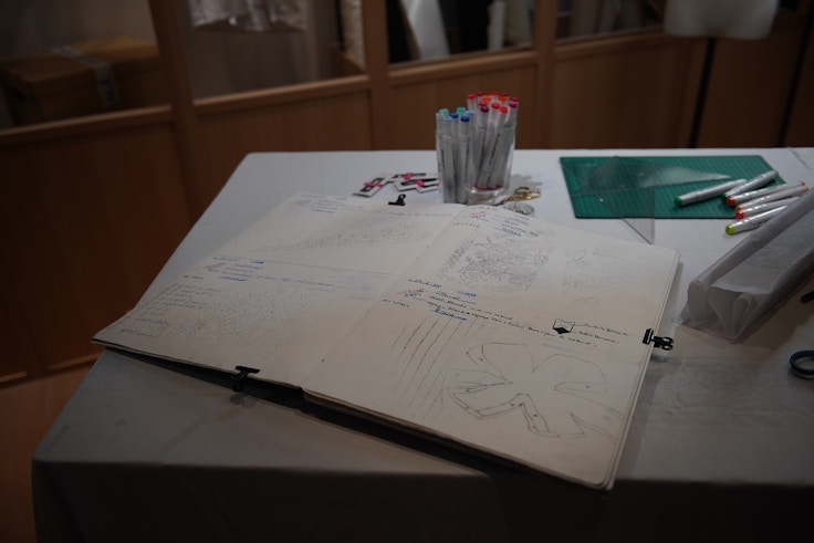 「未知なるクリエイション、その先へ」のコンテンツはここまでだが、さらに「ルサージュ 刺繍とテキスタイル、100年の物語」と題する企画展へと続く。ガブリエル・シャネルにはじまり、カール・ラガーフェルドなども含めメゾンではどのようなインスピレーションからどのようなデザインが生み出されたのか、あるいは、ツイードなどの素材が開発されたのか、というヒストリーを紹介する壮大なるアーカイブ展示が展開する。
